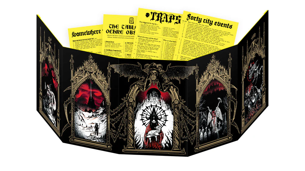 MÖRK BORG is a brutal, rules-light, and gorgeously grotesque doom-metal fantasy RPG that plunges players into a dying world teetering on the brink of apocalypse. Published by Free League and created by Pelle Nilsson and Johan Nohr, the game embraces chaos, nihilism, and heavy metal aesthetics, with a minimalist d20-based system that prioritizes fast, deadly combat and darkly poetic storytelling. Players take on the roles of doomed antiheroes—heretics, exiled knights, or cursed sorcerers—desperately scavenging for survival as the world decays around them. The setting is a grimdark nightmare of crumbling ruins, insane prophets, and unspeakable horrors, where every session inches closer to inevitable doom. With its striking art, bleak humor, and relentless energy, MÖRK BORG is less a traditional RPG and more a cinematic, anarchic experience—perfect for those who embrace the end of all things with sword in hand and a scream in their throat.