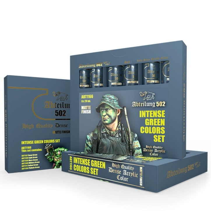 Green tones are the focus of this set. The combinations of the included colors allow to paint different military figures, fantastic figures or any other piece in which green tones are important to be made.