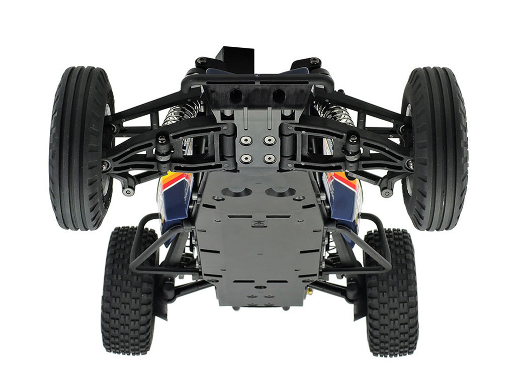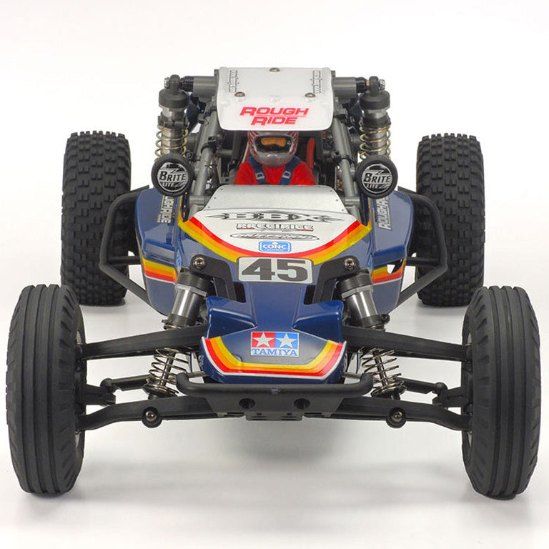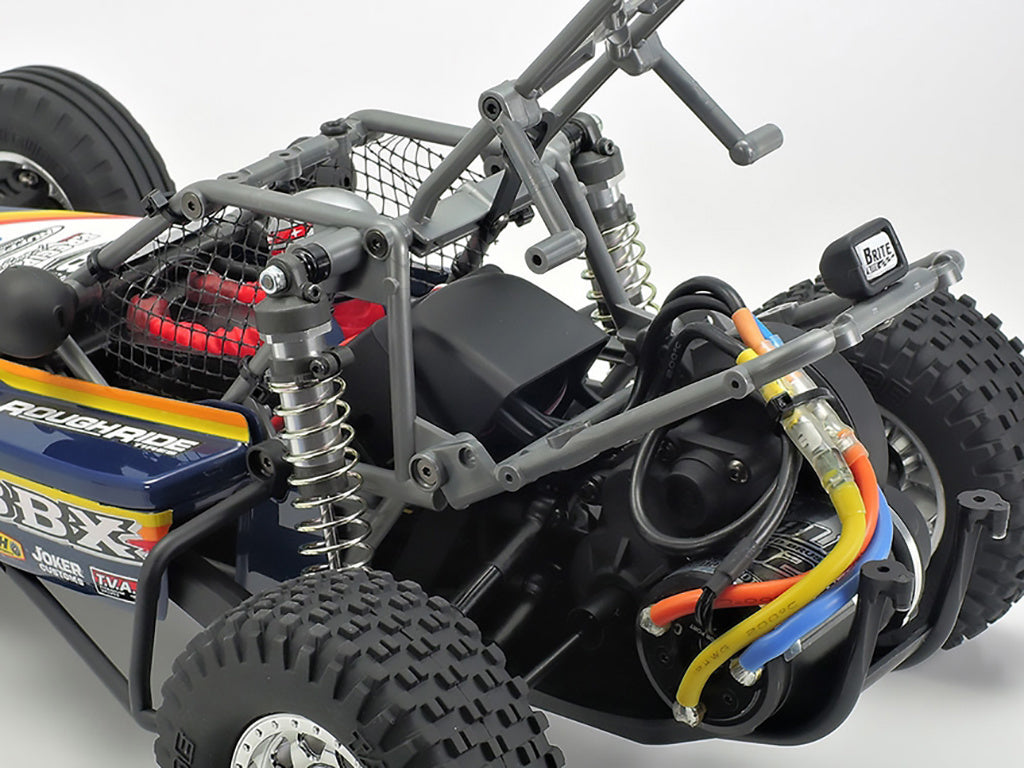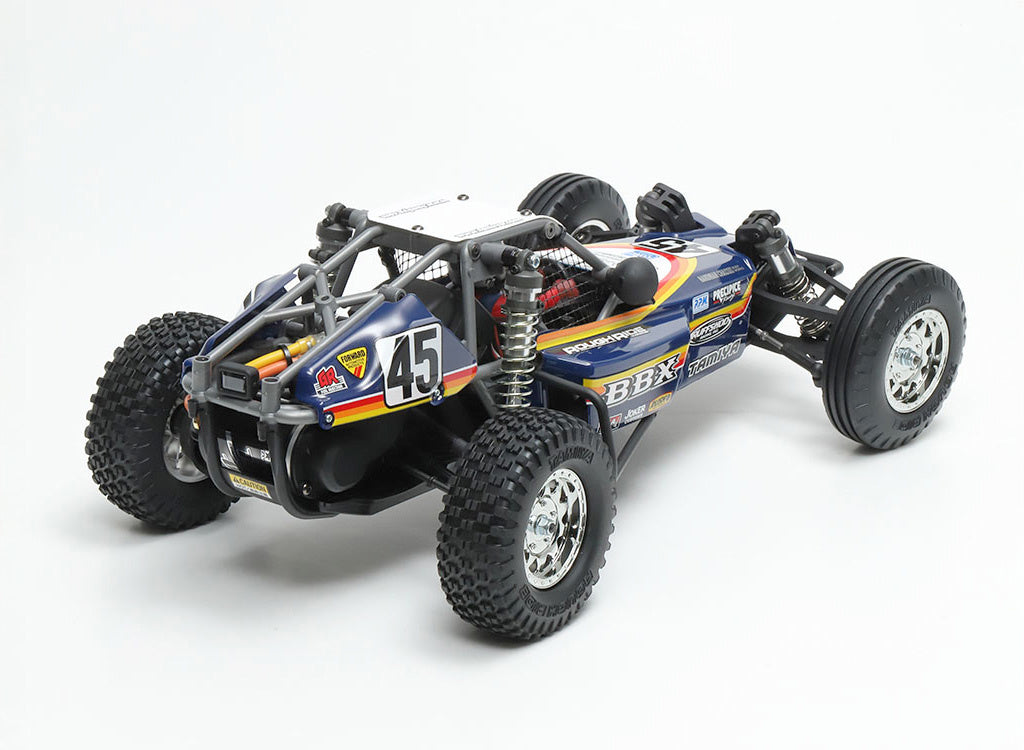 Tamiya’s designers have taken inspiration from its back catalogue of iconic 2WD off-road buggies to bring fans of radio control the ALL-NEW BBX! This 1/10 R/C 2WD off-road buggy model features a combination of classic design and modern performance. Its brand-new chassis, reminiscent of 1980s sand rail dune buggies, is a hybrid monocoque-roll cage and employs rear trailing arm suspension inspired by full-size UTVs. The new body is designed by famed Japanese artist Atsushi Arino and utilizes a classic 1980s inspired livery with retro wheels and tyres to match!