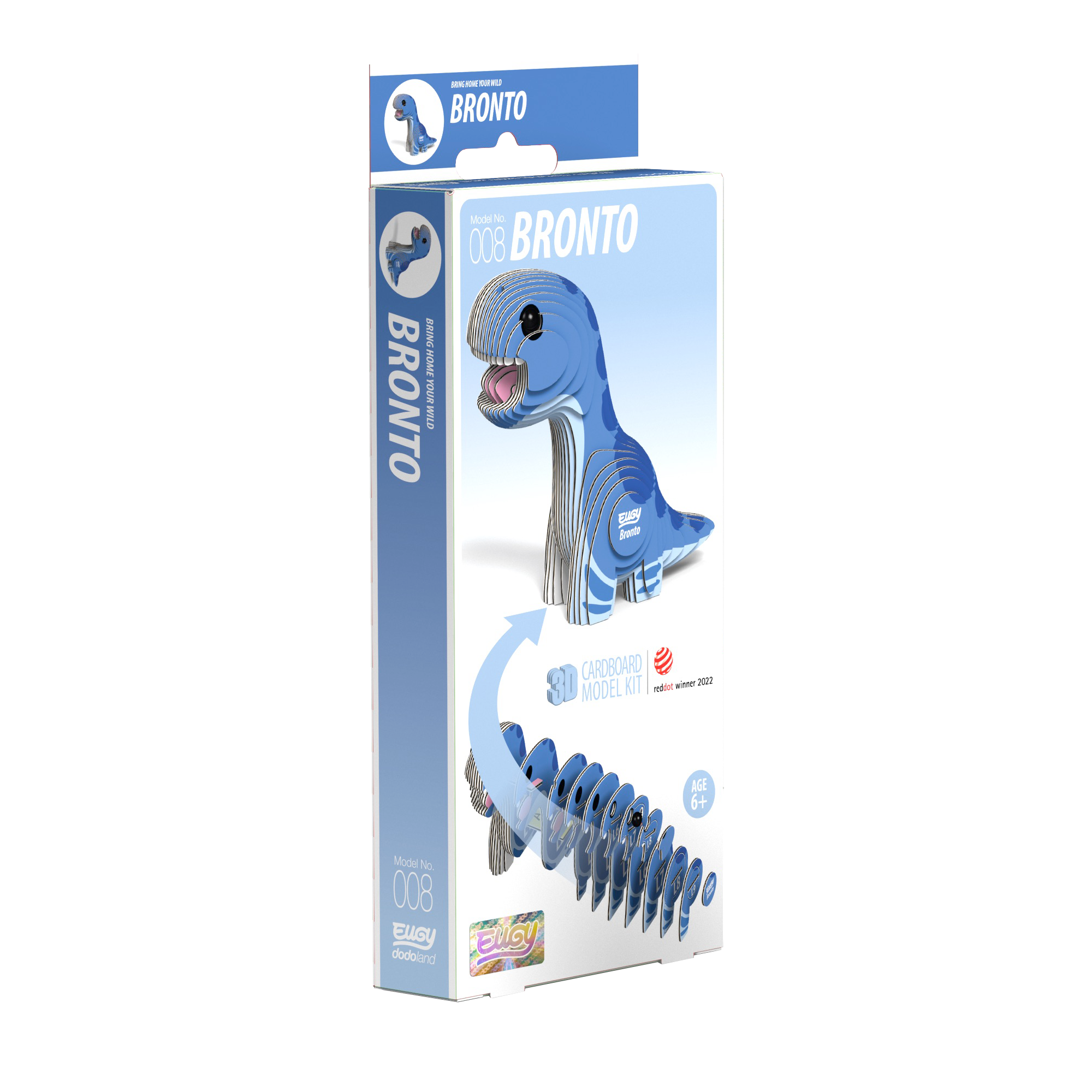 The Eugy Bronto is a 3D puzzle made from cardboard, designed for children ages 4 and up.