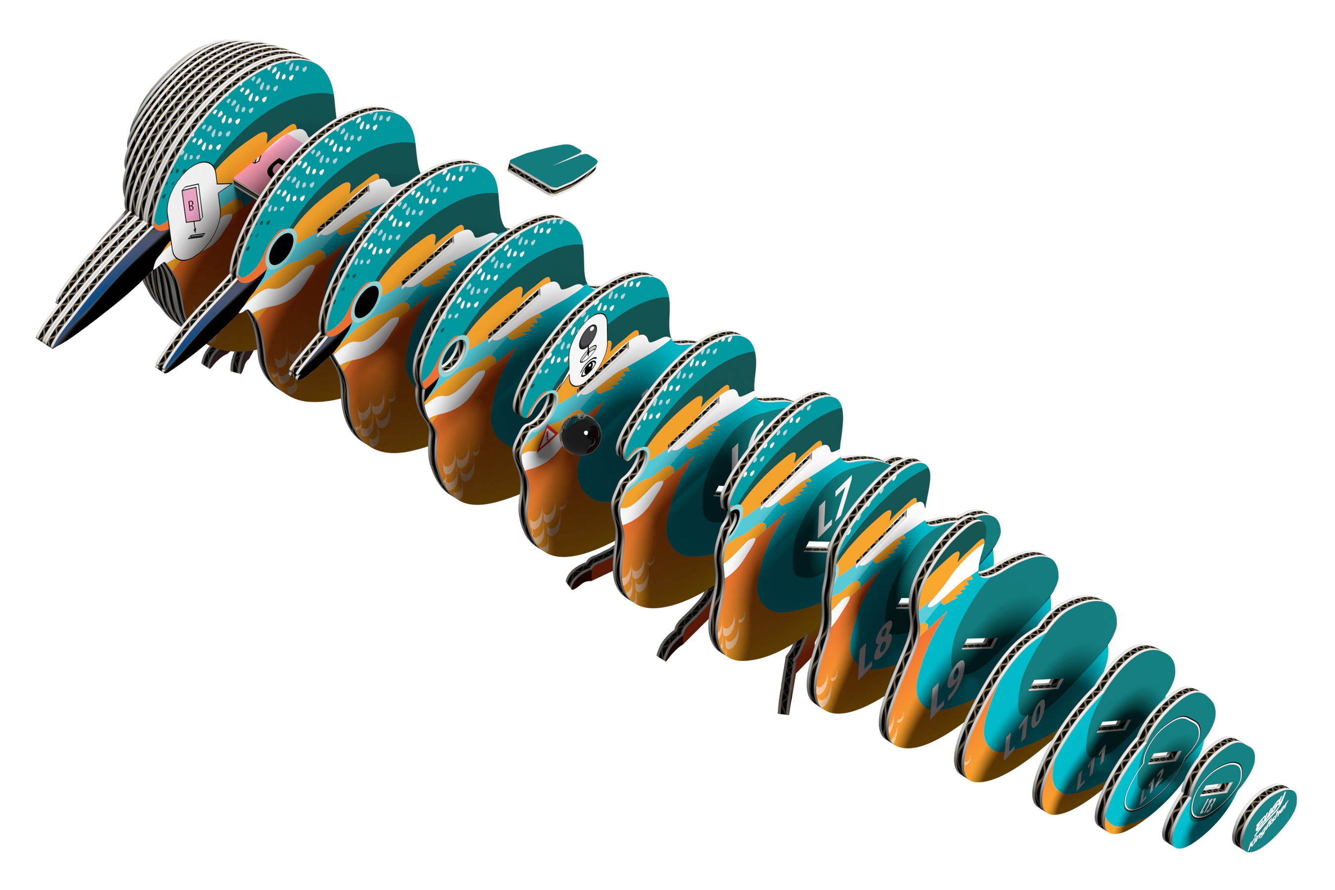 Meet the dazzling Kingfisher, inspired by New Zealand's native Kotare! With vibrant plumage and swift dives, they’re expert fishers.