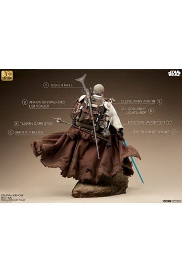 As a collection, Sideshow's Mythos series are fine art collectibles that allow fans to imagine what could have been, but maybe never was. Myths meant to be initiated by the eye and completed by the mind. Combining the beloved elements of Sideshow's original Mythos statue release and intricate sixth scale piece, the mixed media Obi-Wan Kenobi Mythos Premium Format Figure presents collectors with the ultimate legacy figure, encouraging them to experience the full history of Sideshow and Star Wars in one cumulative design.