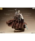 Jedi, general, fugitive, mentor. Measuring 21" tall x 24" wide x 16" deep, the Obi-Wan Kenobi Mythos Premium Format Figure wanders the dry, treacherous terrain of Tatooine, the planet which represents everything he gained and lost in his lifetime. On his back he carries artifacts of his victories and failures alike, including Clone Wars armor and the Lightsabers which belonged to his old Master Qui-Gon Jinn and his former Padawan Anakin Skywalker. Obi-Wan's brown boots sink into sand and bone as the past weighs him down. Only his own Lightsaber, bright as the clear blue sky, burns as a beacon of new hope in a galaxy far, far away.