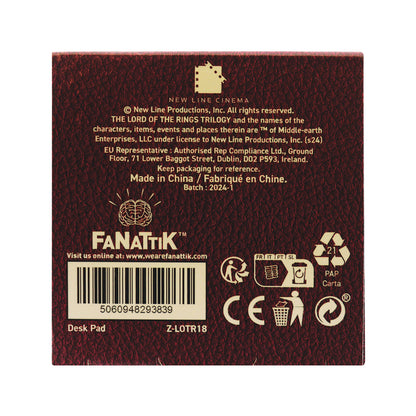 This Desk Pad & Coaster Set brings both the land of Middle-earth and your worktop surface to life! Surrounding the One Ring, the desk pad features detailed artistic imagery of the iconic characters and objects from the Lord of the Rings, and the ring and its inscription are also detailed on the accompanying coaster. Both items in this set are finished with a non-slip rubber underside and reinforced durable edges.