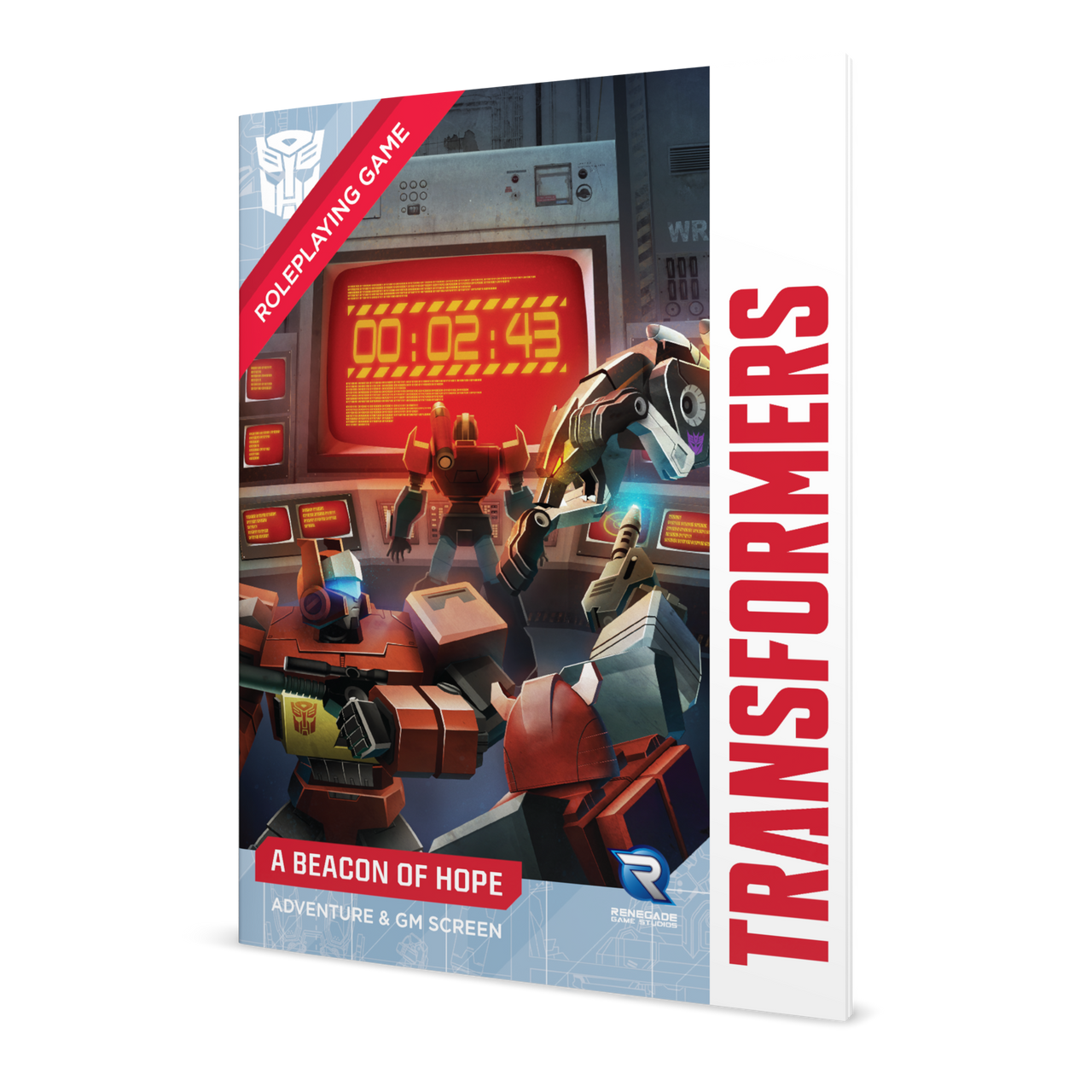 Spend less time looking up rules and more time playing Transformers with this full color Game Master’s Screen for use with the Transformers Roleplaying Game! In addition to the helpful rules tables and references on the interior of the screen, this package includes a new adventure scenario for your game, “A Beacon of Hope” ready for new players that have finished the introductory adventure included in the Transformers Roleplaying Game Core Rulebook.