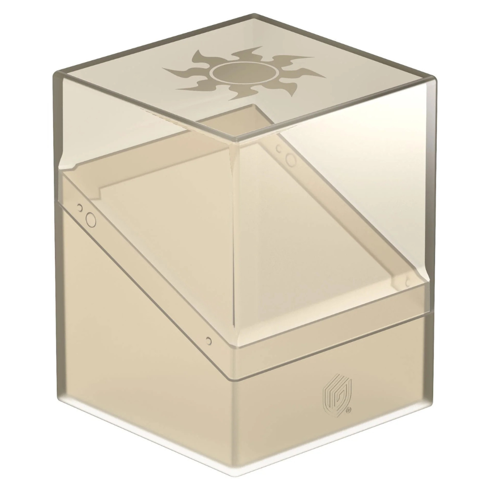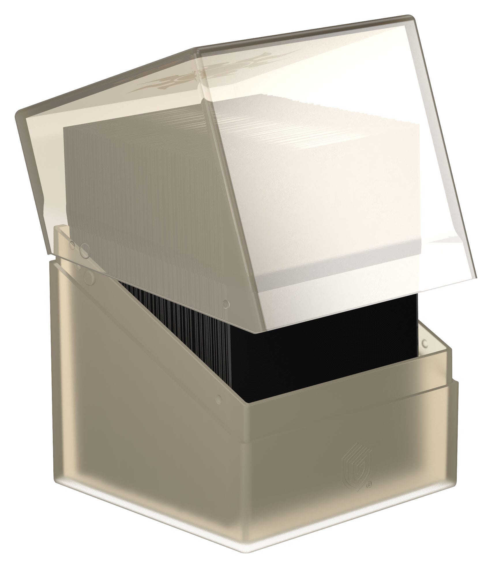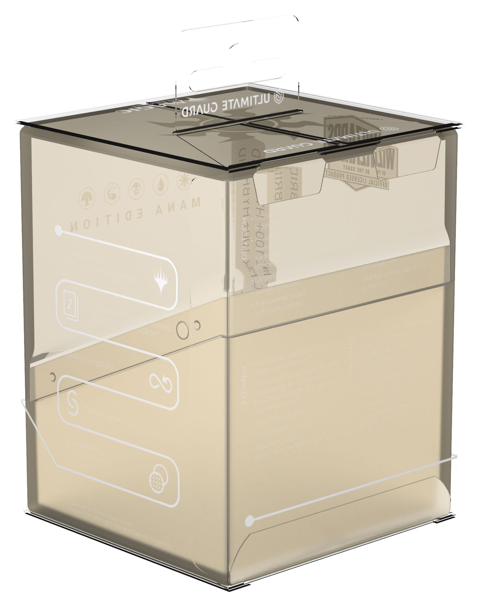 Ultimate Guard's Boulder 100+ Hybrid combines the completely transparent top of the Boulder Clear with a soft-touch base in the style of the original Boulder. The officially licensed MTG deck box is easy to open, but offers reliable protection for your cards thanks to its sturdy case and secure closure. The Boulder 100+ Hybrid holds up to 100 double-sleeved cards and is suitable for all Magic: The Gathering formats such as Commander (EDH), Standard or Modern.