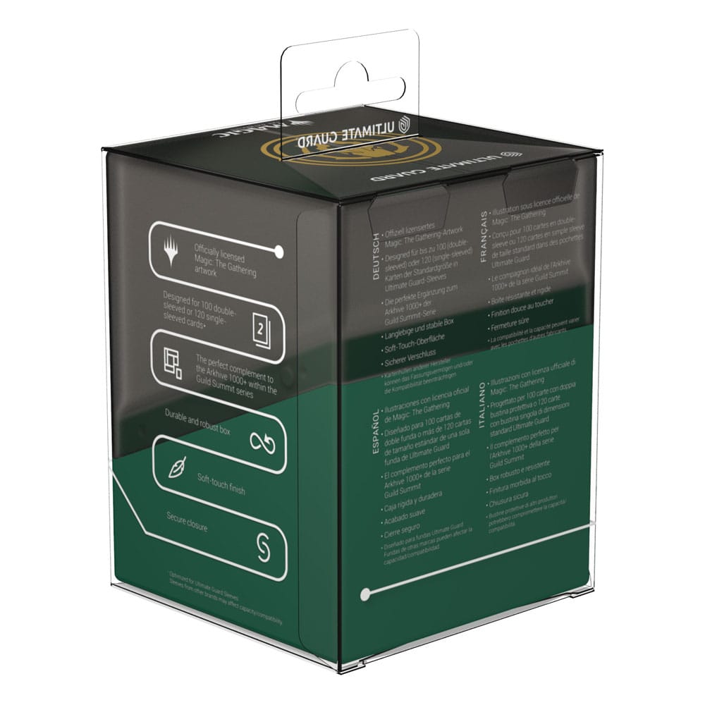 Ultimate Guard celebrates one of the most iconic and popular planes in Magic: The Gathering's history with the "Guild Summit" series: Ten elegant Boulder 100+ featuring the golden crest of each guild on the semi-transparent deck boxes, all with a silky soft-touch finish. The Boulder 100+ holds up to 100 double-sleeved cards, making it the perfect home for your two-color Commander deck! Don't miss out on the stunning Arkhive 1000+ Xenoskin from the "Guild Summit" series either, which is the perfect storage place for up to ten Boulder 100+.