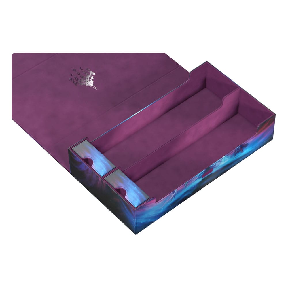 The Omnihive 1000+ Xenoskin gathers the mighty spirit dragons of Tarkir on a single deck box! Designed with two large main compartments and two flexibly positionable magnetic trays, the Omnihive can store up to 1000 single cards (double-sleeved), multiple deck boxes, accessories like dice, and/or play-mats simultaneously. The durable Xenoskin surface features the artwork Call the Spirit Dragons by Liiga Smilshkalne from Magic: The Gathering’s Tarkir: Dragonstorm set. The lid of the Omnihive is secured with strong magnets and our ZnapClaw mechanism, while the microfiber lining inside provides extra protection for cards, deck boxes, and accessories.