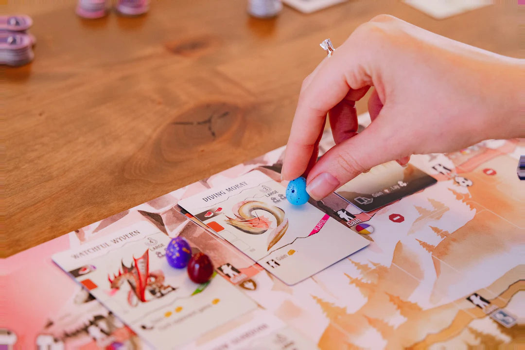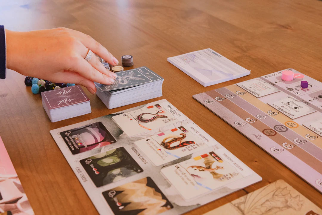 You are an amateur dracologist in the world of Wyrmspan, a place where dragons of all shapes, sizes, and colors roam the skies. Excavate a hidden labyrinth you recently unearthed on your land and entice these beautiful creatures to roost in the sanctuary of your caves.